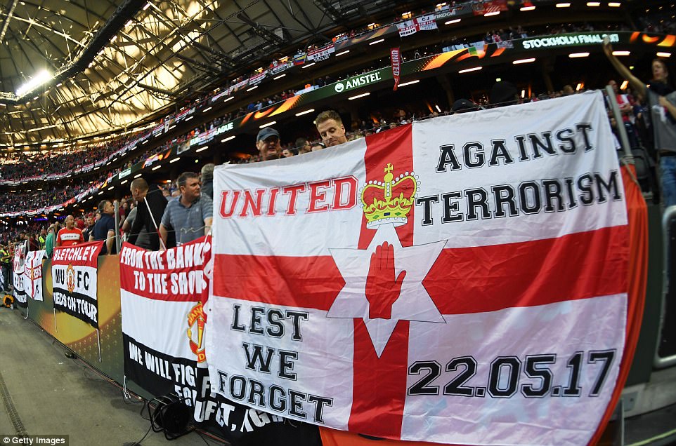 Hàng chục ngàn fan hâm mộ bóng đá thành phố Manchester cũng đã dành 1 phút tưởng niệm đến những nạn nhân đã mất.