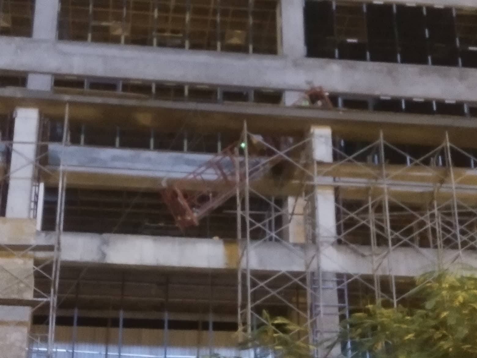 Qua quan sát thanh sắt dài khoảng 4 mét từ thang truyền trên tầng 16 dự án nhà ở và trung tâm thương mại trên đường Lê Văn Lương (quận Thanh Xuân, Hà Nội).