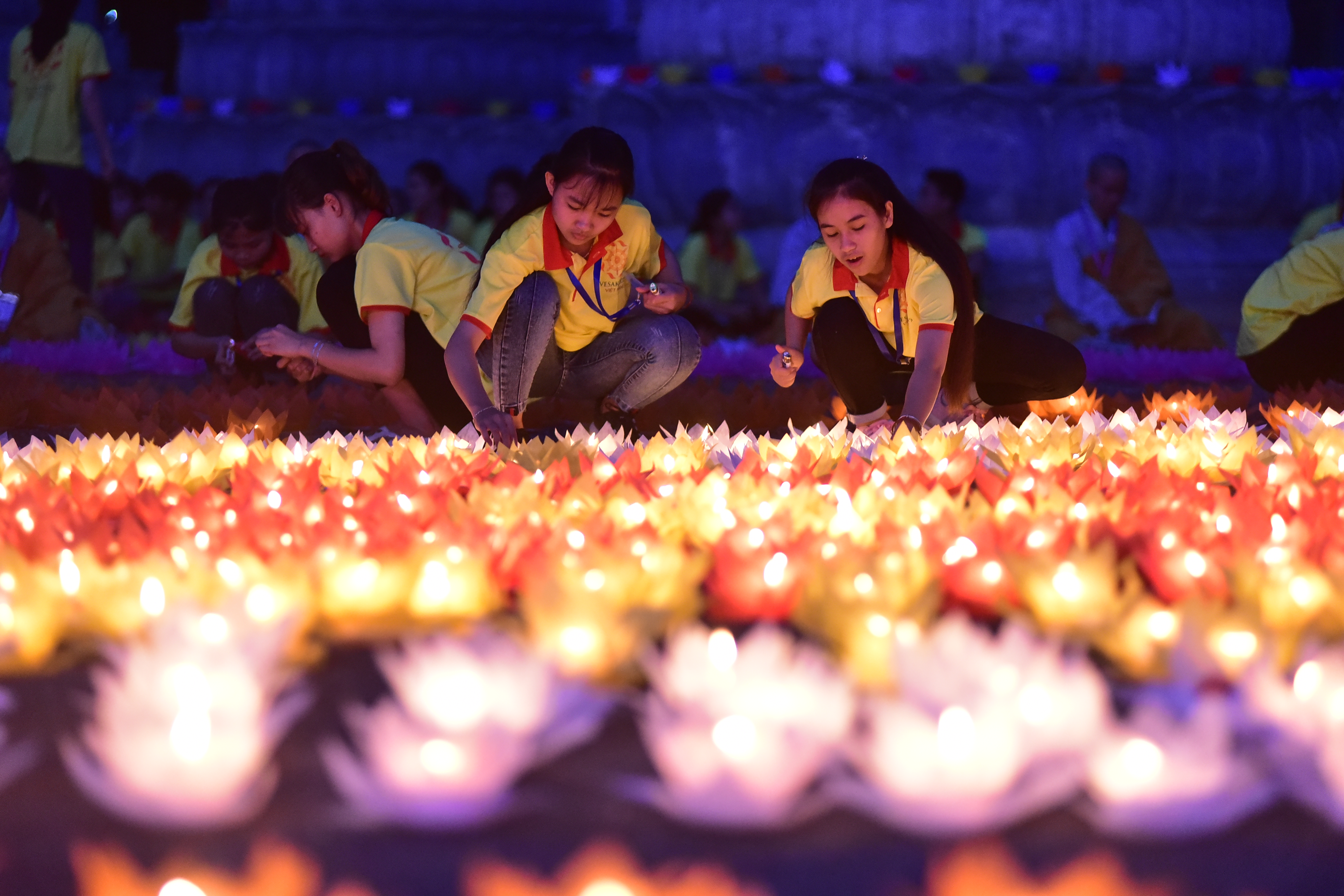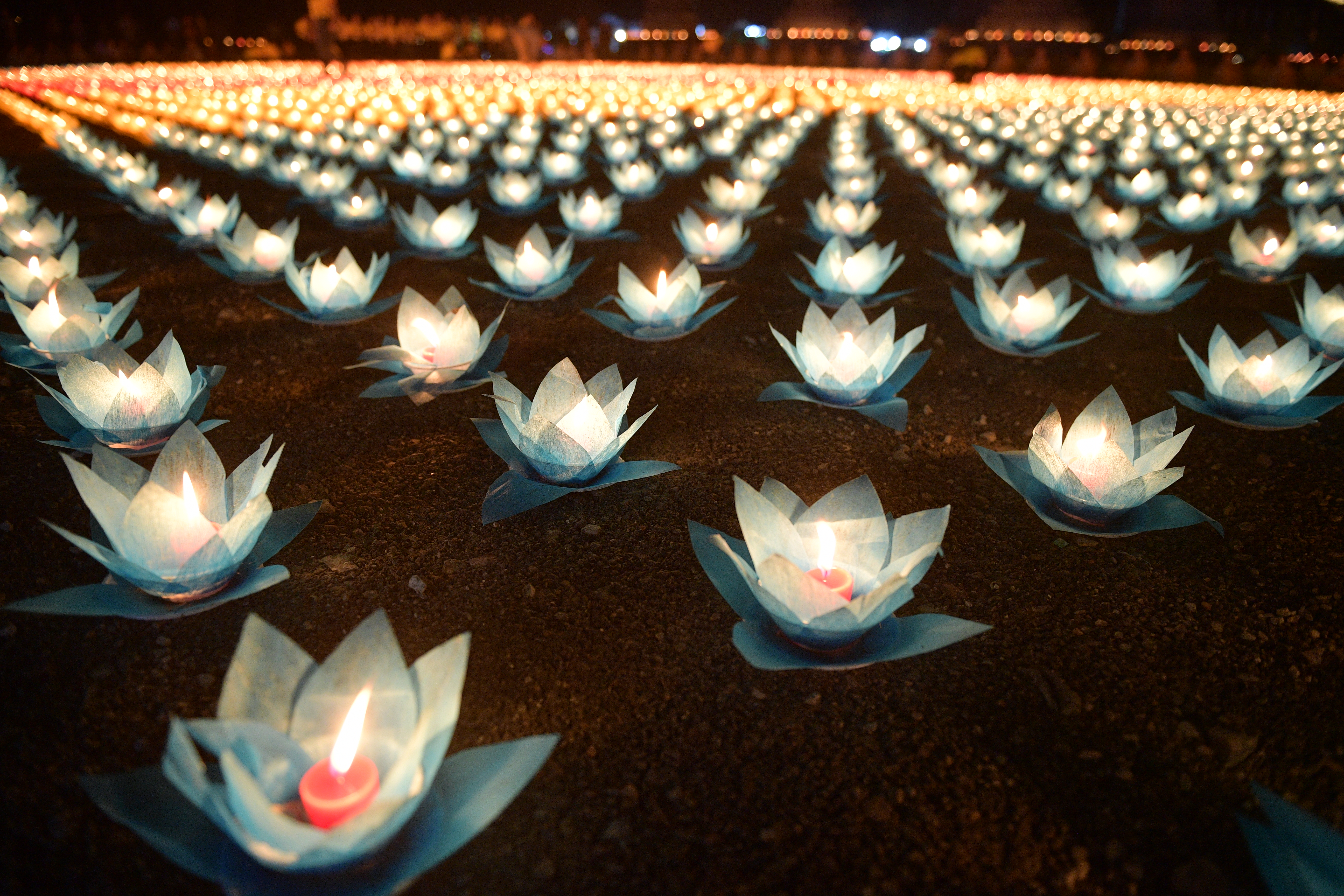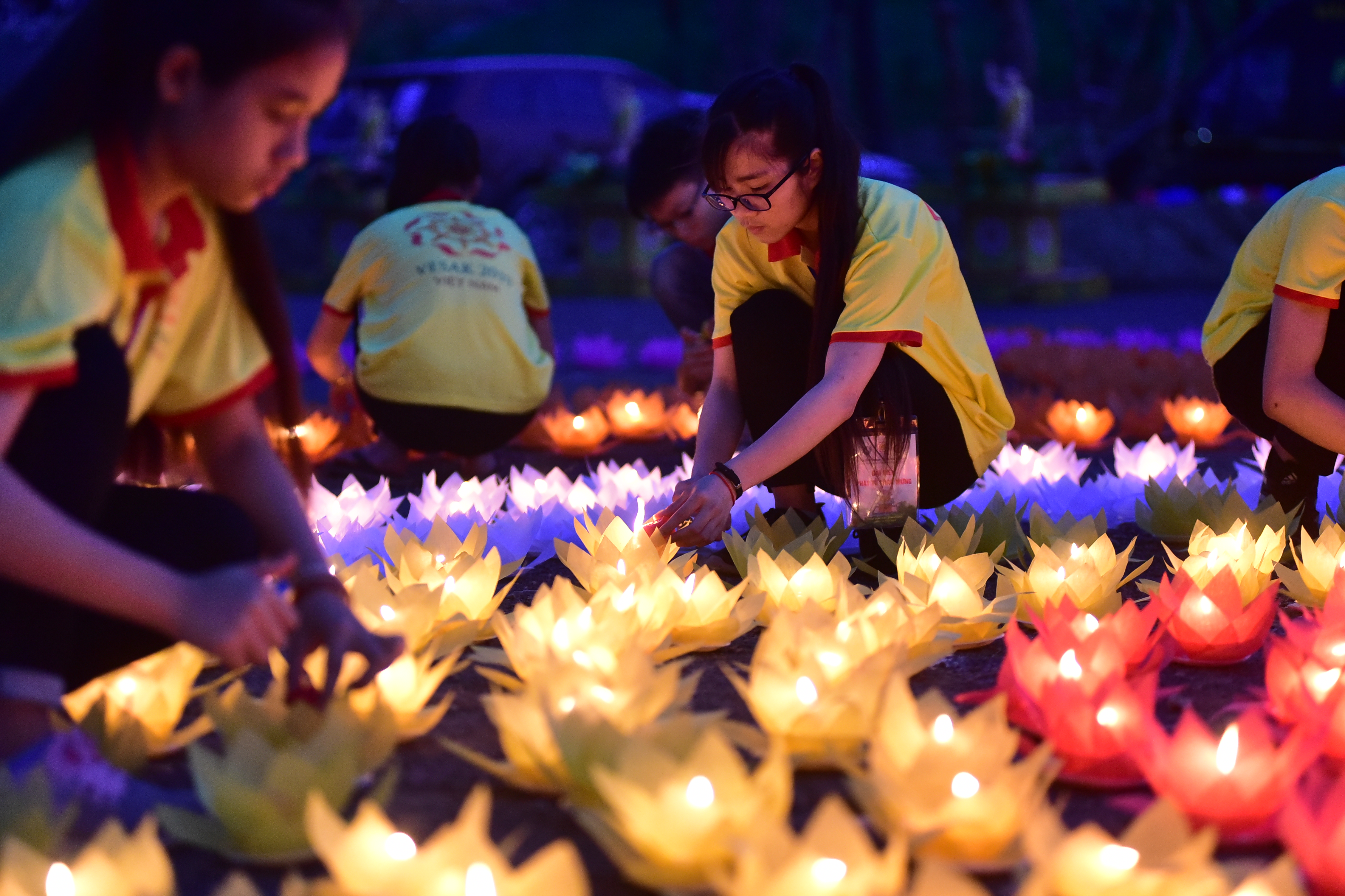 65.000 ngọn nến đã được thắp lên trong lễ hội hoa đăng cầu nguyện cho thế giới hoà bình, chúng sinh an lạc, quốc thái dân an, nhân dịp Đại lễ Phật đản Liên Hợp Quốc Vesak 2019.