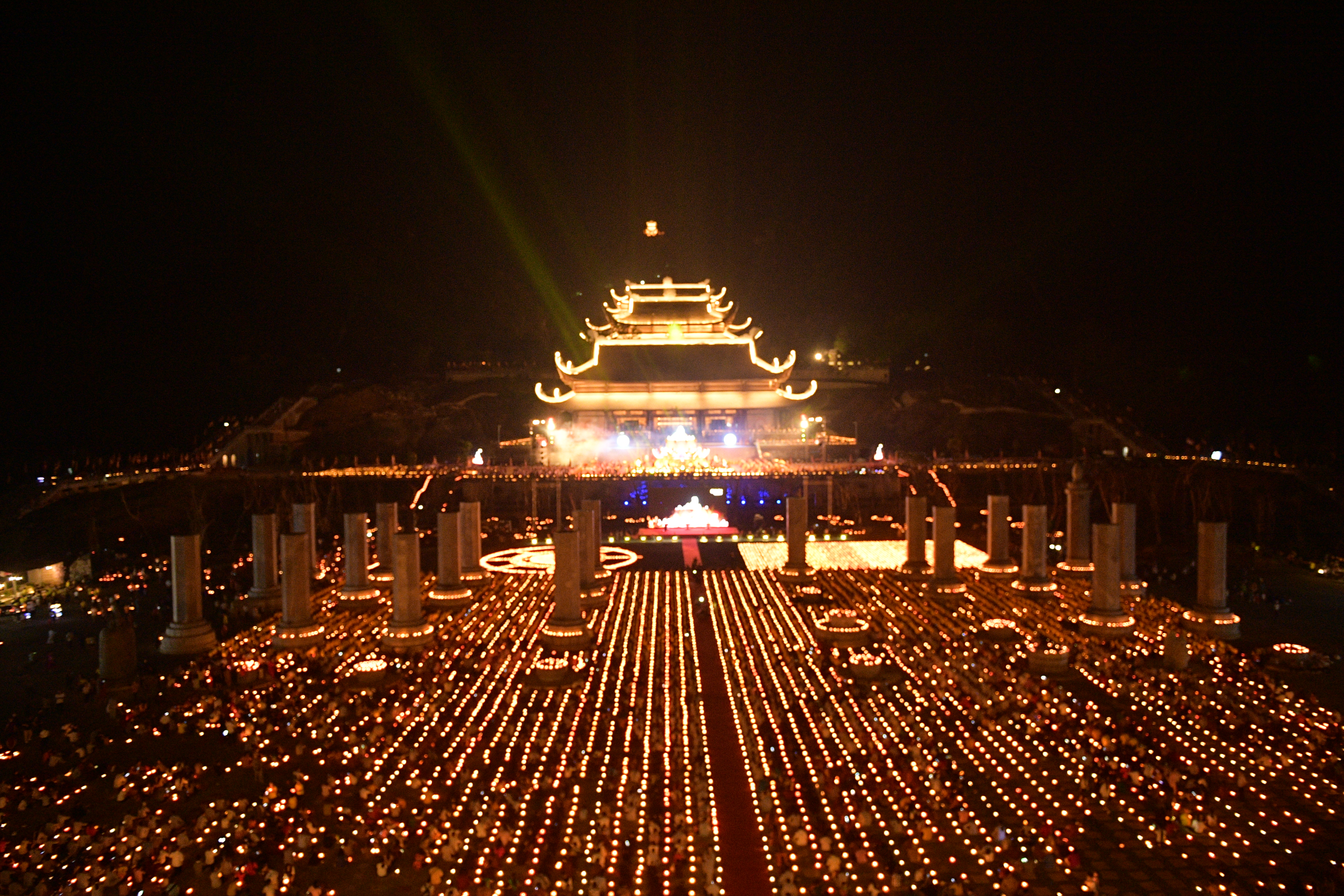 Tối 13/5, tại chùa Tam Chúc, nơi tổ chức Đại lễ Phật đản Liên hợp quốc đã diễn ra lễ hội hoa đăng, thắp nến cầu nguyện hoà bình thế giới với khoảng 5 vạn phật tử tham dự.