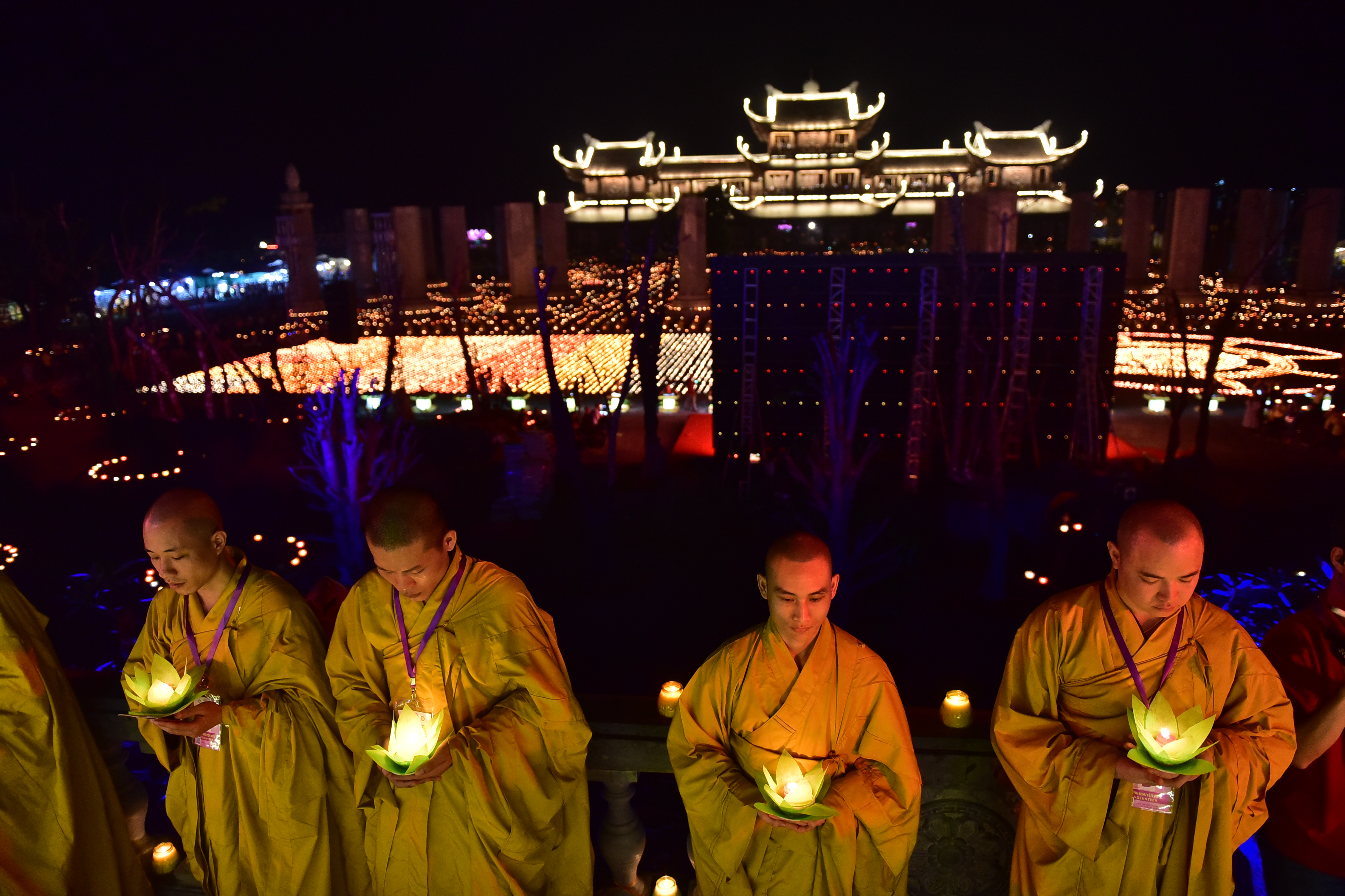 Trong lễ hội hoa đăng cầu nguyện hòa bình thế giới thu hút hơn 5 vạn phật tử tham gia, có 200 tăng ni và 10.000 phật tử ngồi thiền, tụng kinh cầu nguyện