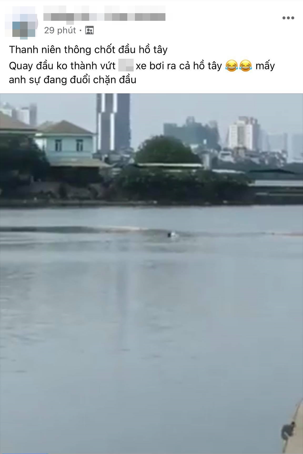 Lúc này, khi nhìn thấy lực lượng cảnh sát đang làm nhiệm vụ, người đàn ông này ngay lập tức bỏ xe máy, chạy đến khu vực hồ Tây rồi nhảy xuống để trốn.