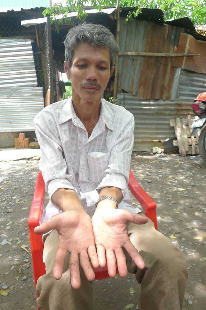 Bàn tay ông Lân đầy những vết xước do băng rừng. Ảnh: Tiền Phong.