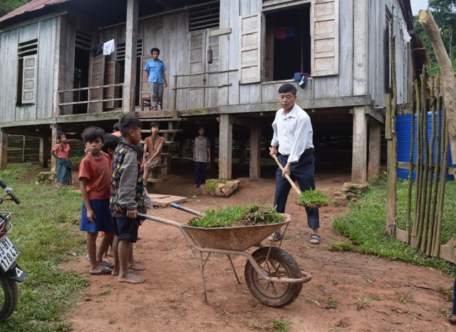 Thầy Hà cùng lao động đầu năm với học sinh