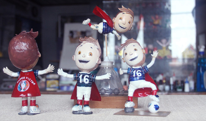Trứng được ông lấy sạch mọi thứ bên trong và dùng keo kết nối chúng lại với nhau. Ông sẽ dùng các vật liệu khác như: mút xốp, ống nhựa, đất sắt, chì…, tạo các chi tiết mái tóc, chân, tay và phun sơn cho giống nguyên bản con linh vật cần làm.