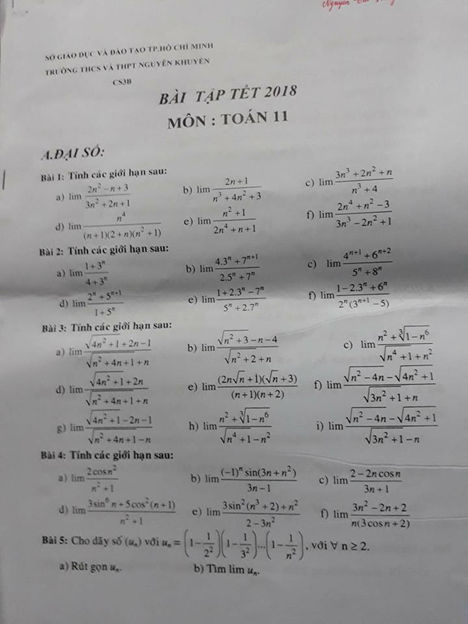 Bài tập là 'quà Tết' truyền thống của trường Nguyễn Khuyến. Ảnh: Nguyen Khuyen Confession.