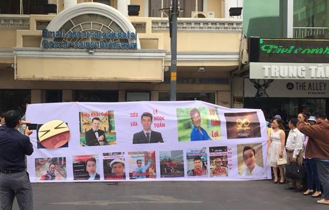 Hình ảnh của những người đứng đầu vụ lừa đảo tiền ảo trị giá 15 nghìn tỷ đồng được các nạn nhân in ra để tố cáo.