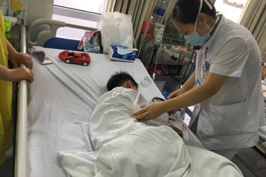 Bé trai bị chó nuôi cắn đứt rời môi. Ảnh: BSCC/ Lao động.