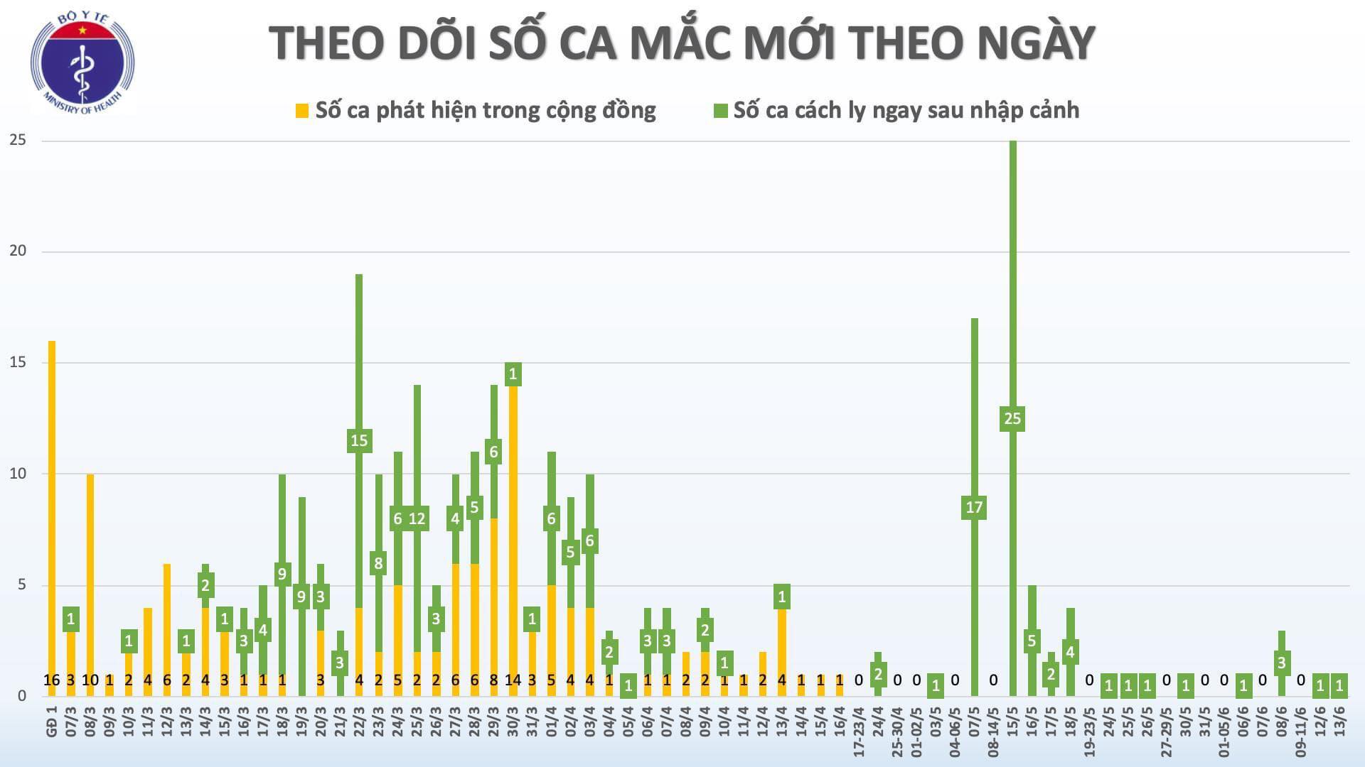 – Tính từ 6h đến 18h ngày 13/6: 1 ca mắc mới.