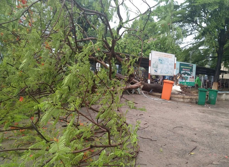 Hôm 2/6, lãnh đạo nhà trường đã có văn bản đề nghị Phòng Quản lý đô thị TP. Biên Hòa đến trường xử lý 4 cây xanh, trong đó có cây phượng vừa đổ. Tuy nhiên, khi chưa kịp cắt bỏ thì cơn mưa to, gió lớn chiều nay đã khiến cây phượng này bật gốc rồi gãy đổ.