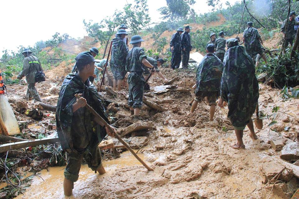 Những ngày qua, huyện Bắc Trà My huy động toàn bộ lực lượng dân quân, bộ đội và người dân địa phương băng rừng để tiếp cận vụ sạt lở vùi lấp 4 công nhân thủy điện. 50 chiến sĩ công binh của quân khu 5 (đóng tại Đà Nẵng) cũng đã được điều động vào để phối hợp tham gia tìm kiếm.
