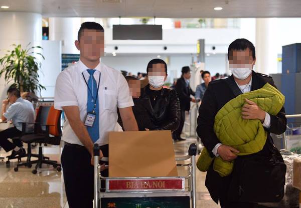 Người nhà bé L. có mặt tại sân bay Nội Bài (Hà Nội) chiều ngày 2/4.