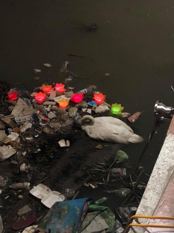 Hình ảnh một con thiên nga nằm gục ở sông Tam Bạc, xung quanh toàn rác thải được đăng tải lên MXH thu hút nhiều sự chú ý.