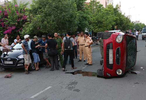 Chiếc xe KIA tiếp tục vòng vèo nhiều tuyến đường, khi đến đường Chu Văn An, đoạn phía trước Học viện Cán bộ thuộc P. 12, Q. Bình Thạnh, thì húc tiếp vào đuôi một ô tô đậu bên lề đường, rồi lật ngang giữa đường. Lái xe không bị thương, tự mở cửa chui ra ngoài.