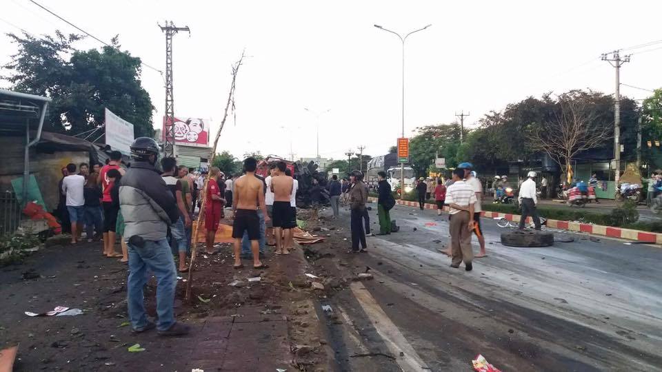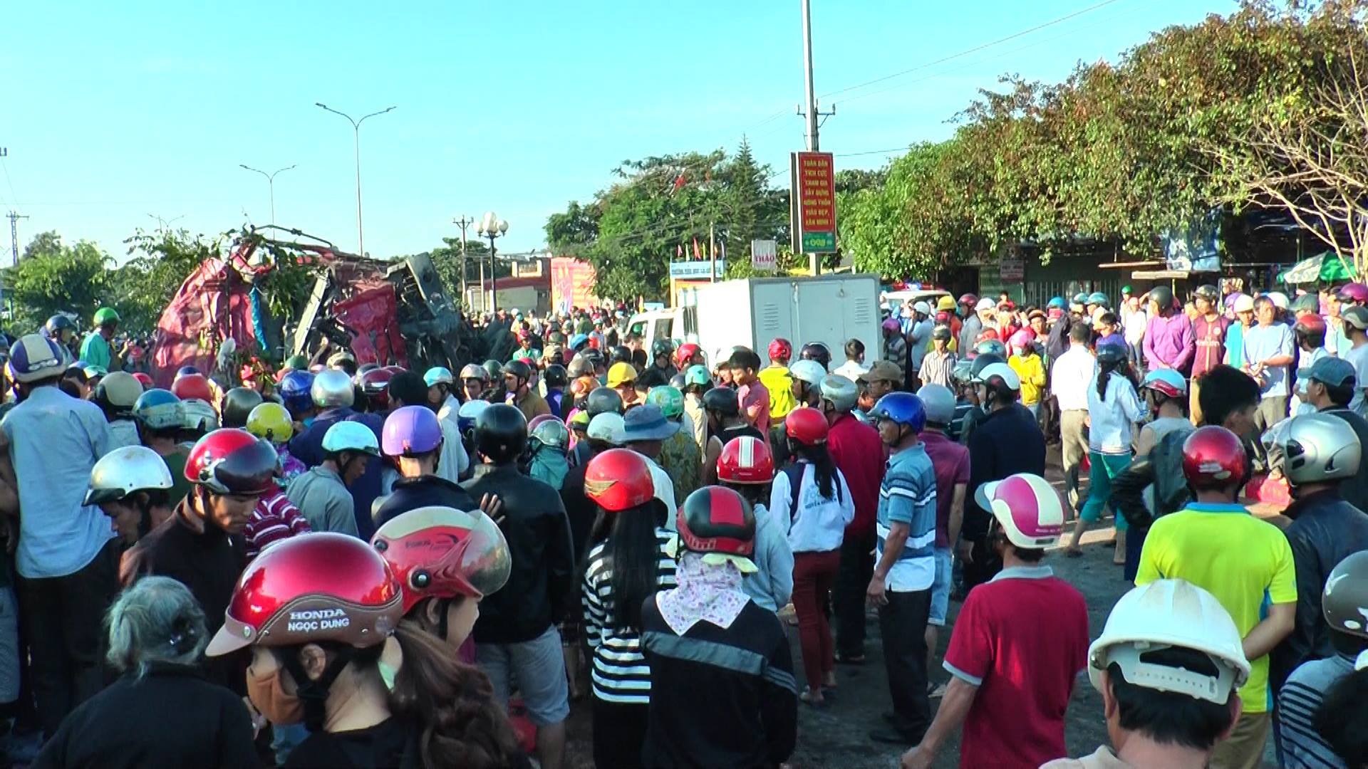 Rất đông người dân có mặt tại hiện trường vụ tai nạn thảm khốc.