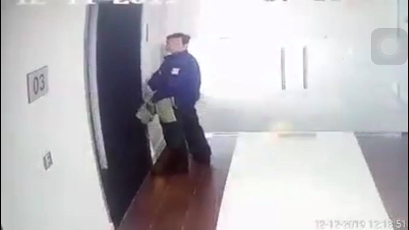 Người đàn ông thản nhiên tiểu bậy trước hành lang chung cư. Ảnh cắt từ clip