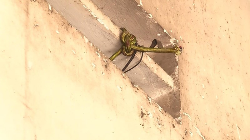 Sợi dây dù mà anh Cường thắt cổ, được buộc trên lỗ thông gió. Ảnh: báo Pháp Luật TP.HCM