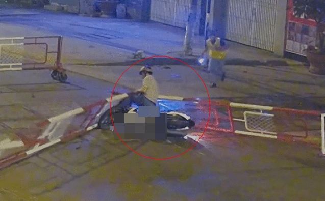 Tuy nhiên lúc này, 1 nam thanh niên điều khiển xe máy lao tới với tốc độ cao, tông thẳng vào barie chắn tàu sau đó bị mắc kẹt cùng thanh rào chăn trên đường ray, may mắn lúc này các nhân viên gác tàu chắn đã kịp thời giải cứu nam thanh niên khỏi vùng nguy hiểm.