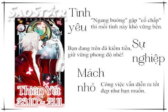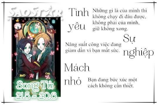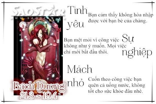 Thứ Ba 6/10: Bận rộn cao điểm khiến Thiên Bình dễ xung đột 05/10/2015 - 14:00 (GMT+7) Công việc không phải lúc nào cũng như ý. Bạn nên làm chủ bản thân, đừng vì một phút ức chế mà ảnh hưởng công việc cũng như mối quan hệ đồng nghiệp. Chia sẻ Bài viết #Hashtag #CUNG HOÀNG ĐẠO #HOROSCOPE #BÓI TOÁN #12 CHÒM SAO #DAILY