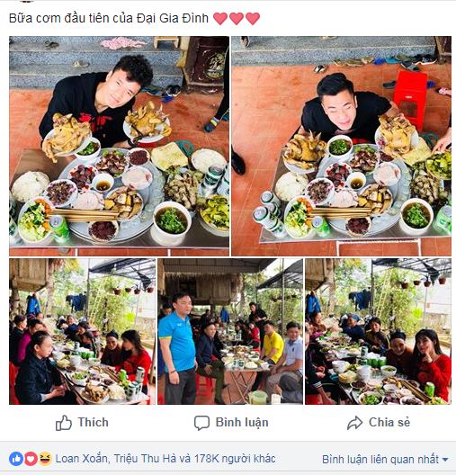 Mới đây, trên trang cá nhân, thủ môn Bùi Tiến Dũng chia sẻ bữa cơm đoàn viên dịp đầu năm mới. Chỉ với dòng chú thích rất đơn giản rằng đây là “bữa cơm đầu tiên của đại gia đình”, ngay lập tức, những bức ảnh của chàng “thủ môn quốc dân” đã nhận về hàng nghìn lượt thích, chia sẻ và bình luận.