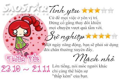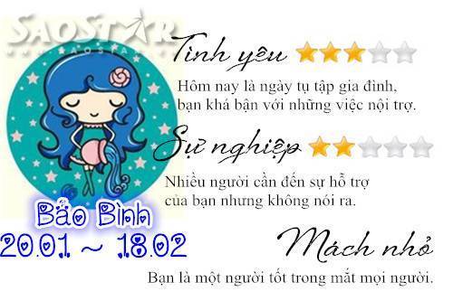 Thứ Sáu 18/9: Có người rất cần Bảo Bình nhưng không dám nói ra 17/09/2015 - 14:00 (GMT+7) Bạn dần trưởng thành hơn! Đôi khi vẫn có cách nghĩ tiêu cực hay phỏng đoán theo tư tưởng cá nhân, nhưng rồi cũng dần quen thôi mà. Chia sẻ Bài viết #Hashtag #SỰ NGHIỆP #CUNG HOÀNG ĐẠO #TÌNH YÊU #HOROSCOPE #12 CHÒM SAO