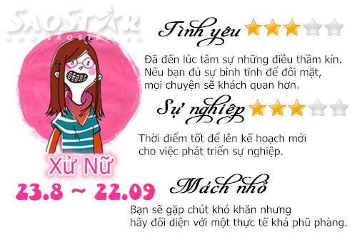 Thứ Tư 2/9: Xử Nữ đã đến lúc nói ra những điều thầm kín 02/09/2015 - 07:17 (GMT+7) Chào ngày mới với những sự kiện hấp dẫn của cung Hoàng đạo nhé! Chia sẻ Bài viết #Hashtag #CUNG HOÀNG ĐẠO #HOROSCOPE #CHÒM SAO #DAILY #HẰNG NGÀY