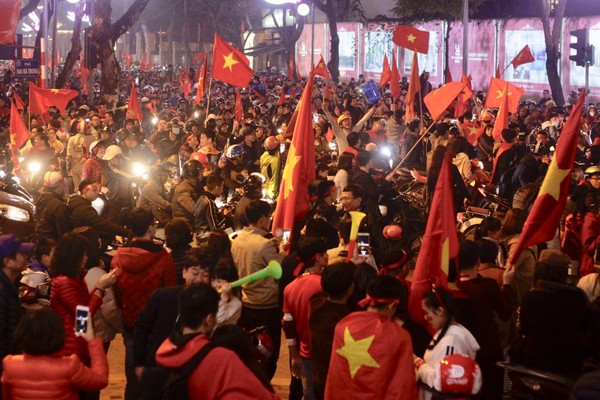 Nhiều cổ động viên đổ ra đường ăn mừng chiến thắng.