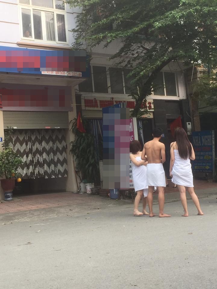 Mạng xã hội đang truyền tay nhau những bức ảnh chụp một chàng trai và một cô gái trên người không mặc quần áo, chỉ quấn một chiếc khăn tắm chạy ra từ nhà nghỉ với nội dung như: Đang trong nhà nghỉ thì có cháy, đang trong nhà nghỉ thì bị đánh ghen… Tuy nhiên, thực hư câu chuyện phía sau bức ảnh lại không phải như vậy.