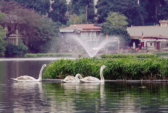 Đàn thiên nga ở hồ Thiền Quang, Hà Nội. Ảnh: TL.