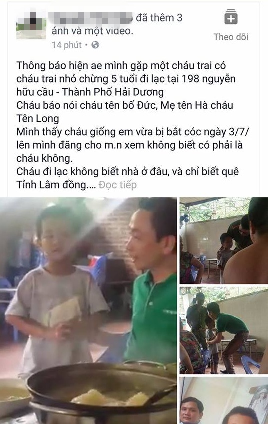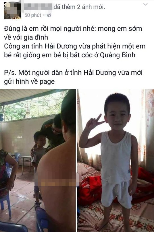 Tuy nhiên, thông tin này cũng nhanh chóng bị “tố” là giả mạo và bức ảnh trên chỉ là ảnh ghép. Bởi theo một nguồn tin khác, cháu bé tìm thấy ở thành phố Hải Dương tên là Long, đi lạc nên được nhiều người giúp đỡ.