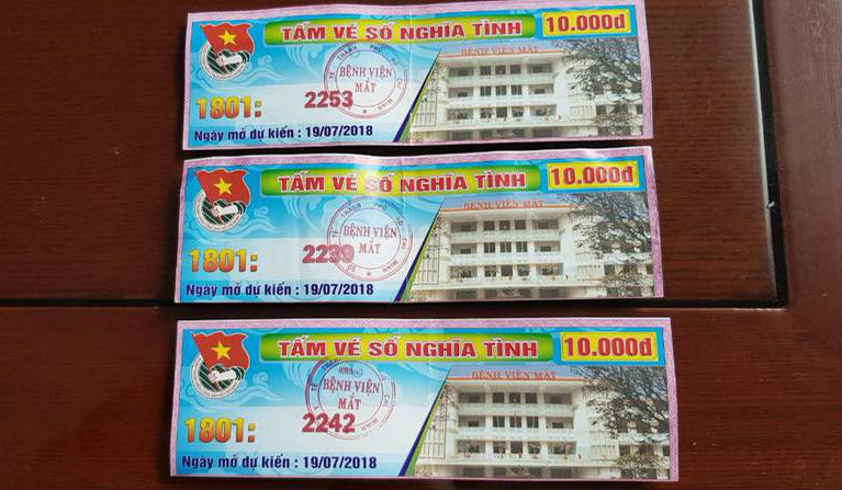 Trên mỗi tấm vé số được bệnh viện phát hành với giá 10.000 đồng, có in dòng chữ “tấm vé số nghĩa tình” cùng hình, con dấu của bệnh viện Mắt TP và huy hiệu đoàn TNCS HCM.