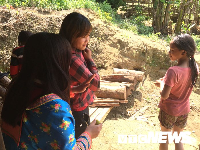 Ngôi nhà gỗ lợp phibroximăng khá rộng, người đàn bà béo tốt đội mũ vải sặc sỡ, nhưng cởi trần đang hái rau. Thấy khách lạ, nhưng bà cứ thong thả mặc kệ, mãi sau chúng tôi đề nghị chụp ảnh bà mới đi tìm áo để mặc. Trong bếp, một “cụ bà” đang dúi những thanh củi vào bếp, nấu nồi cơm to tướng. Lít nhít quanh nhà là bọn trẻ, to nhỏ lớn bé dễ đến hai chục, đuổi nhau, trèo cây tíu tít như đàn chim rừng.
