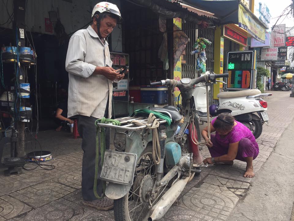 Chú Hùng là khách hàng quen thuộc của tiệm sửa xe.