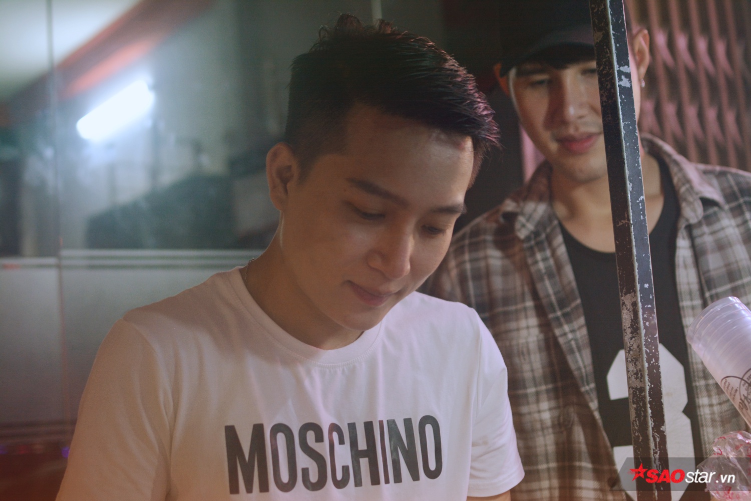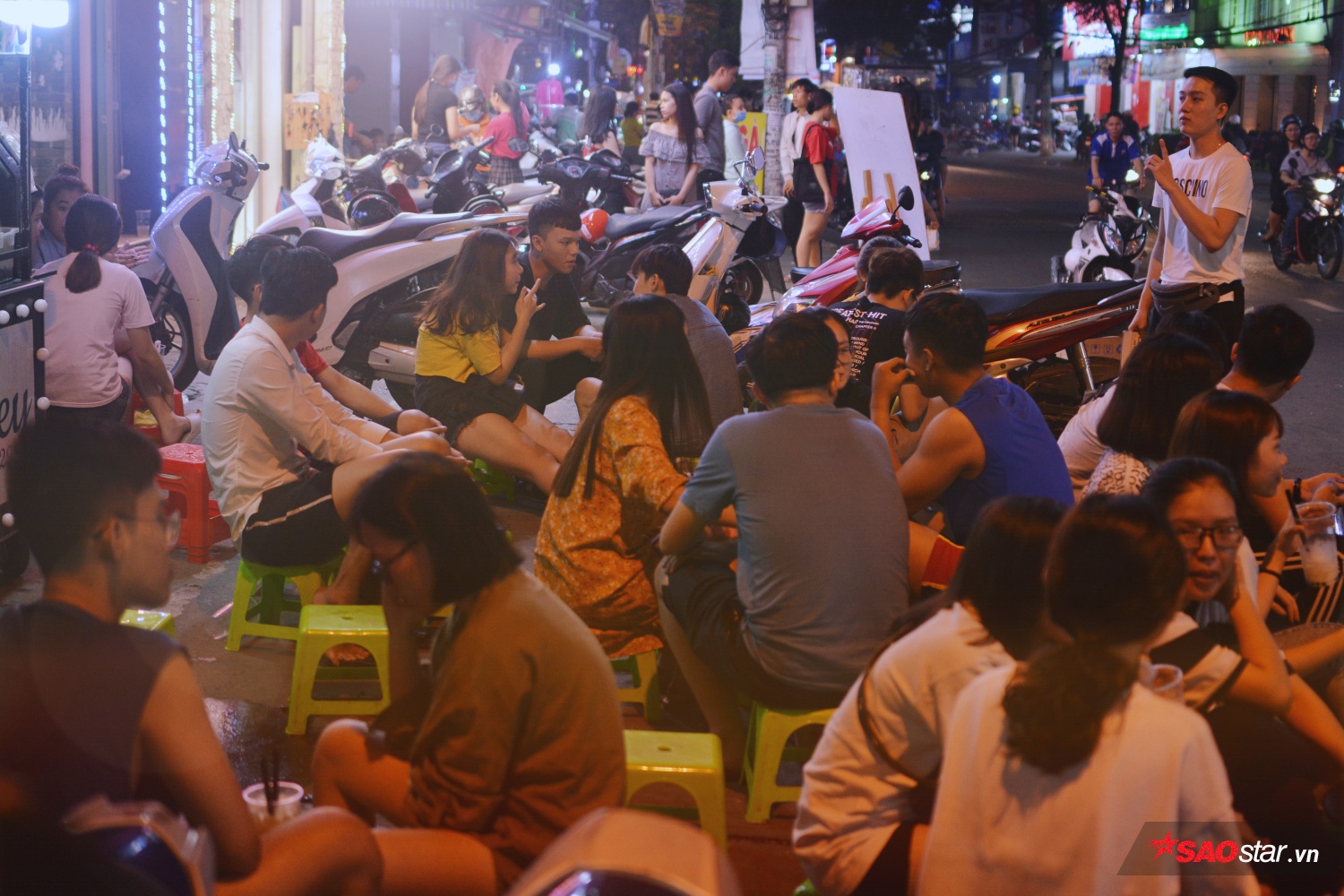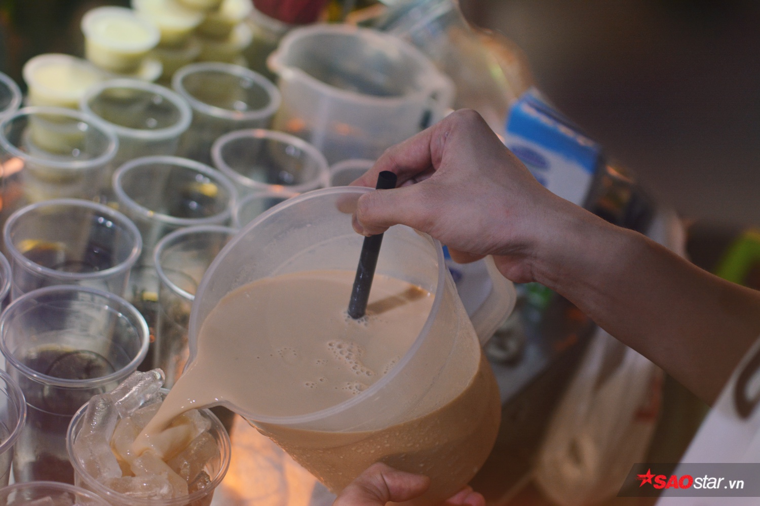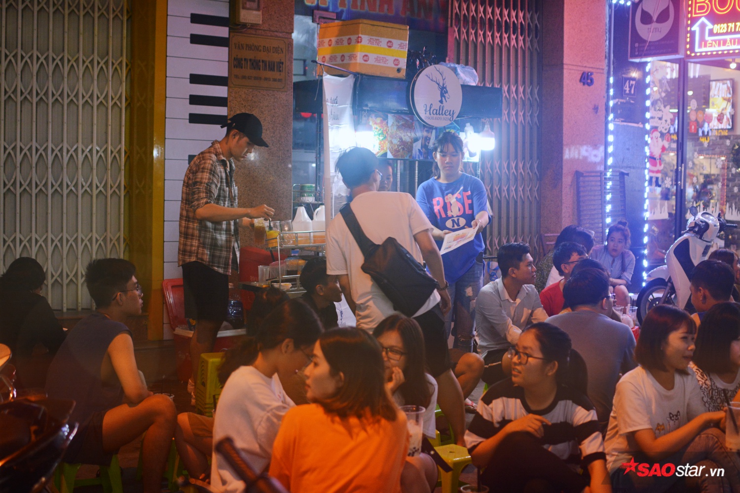 19h30, trời tối hẳn, cả hai lại đẩy chiếc xe trà sữa ra góc đường D2 (Q. Bình Thạnh, TP.HCM) để bán. Quán chỉ có vài chiếc ghế nhựa, kê ngang vỉa hè, nào là trà đào, trà chanh, trà tắc… đều tự tay hai chàng hot boy pha chế. Giới trẻ thấy vậy mà ghé đến thường xuyên để hàn thuyên tâm sự.