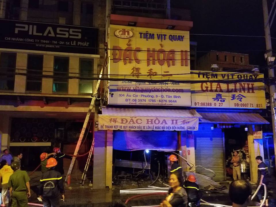 Cảnh sát PCCC quận 11 điều động nhiều phương tiện cùng hàng chục chiến sĩ đến hiện trường dập tắt hỏa hoạn.