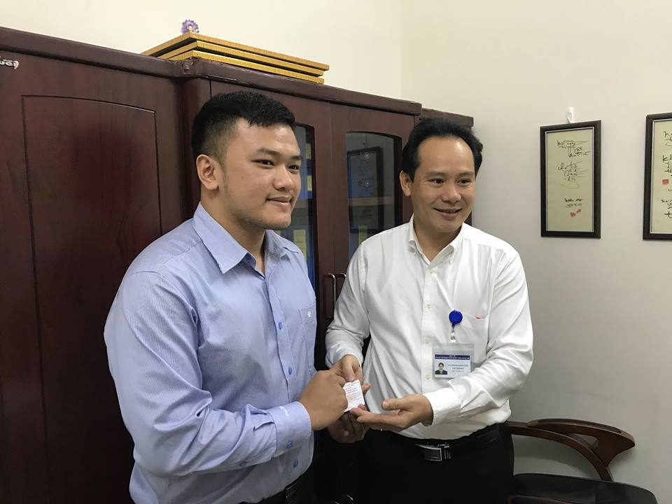 Đại diện Trung tâm Điều phối tạng Quốc gia gửi thẻ ghi nhận đăng ký hiến tạng cho anh Tùng.