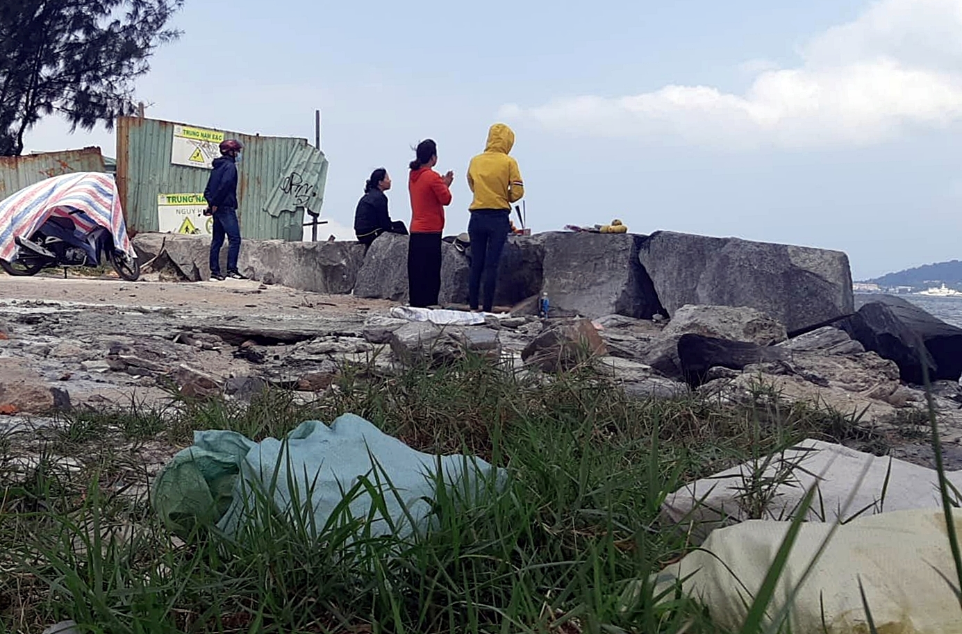 Người nhà cháu Nhi túc trực và liên tục thắp hương bên bờ sông Hàn để hi vọng sớm tìm được thi thể nạn nhân.
