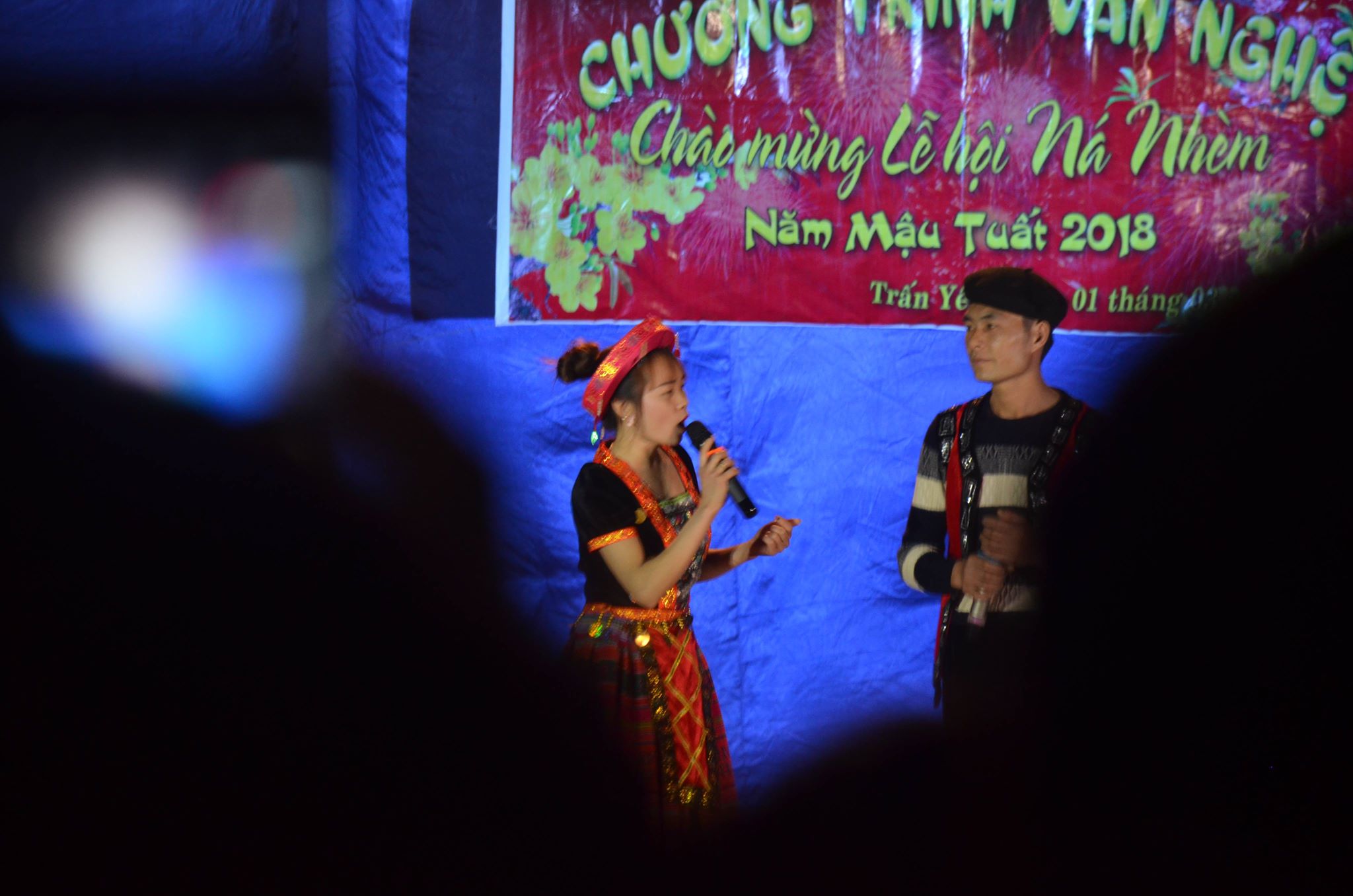 Trai gái trong chương trình văn nghệ ở lễ hội tối ngày 1/3.