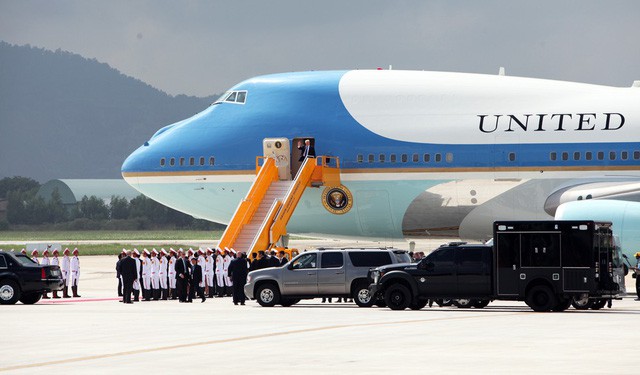 Không Lực Một không đỗ ở khu vực VIP A nhà ga quốc tế để thực hiện nghi thức đón tiếp như thông lệ. Vị trí mà chuyên cơ này dừng lại có khoảng cách rất xa so với nơi chuyên cơ của lãnh đạo các nền kinh tế khác đã đến.