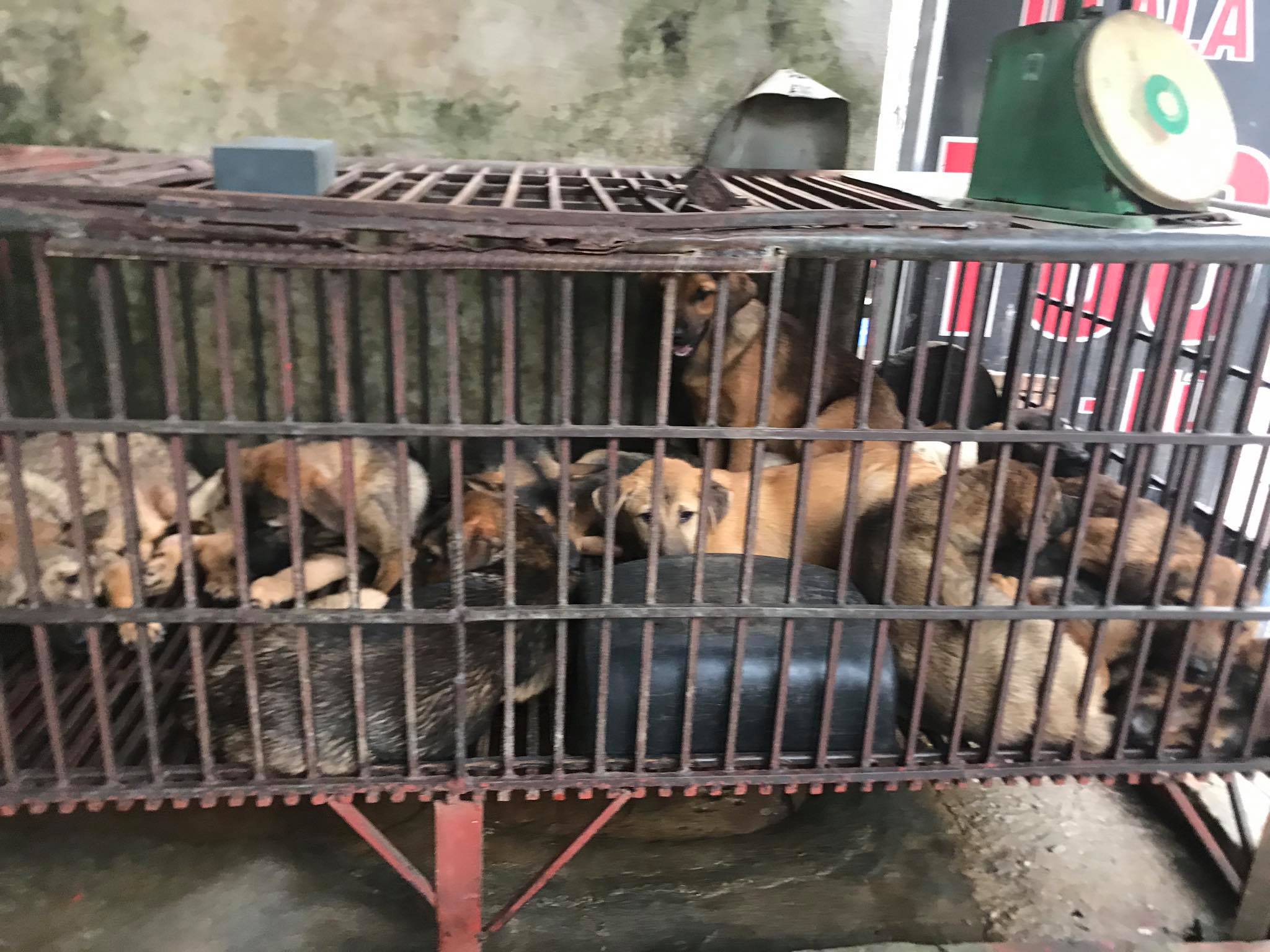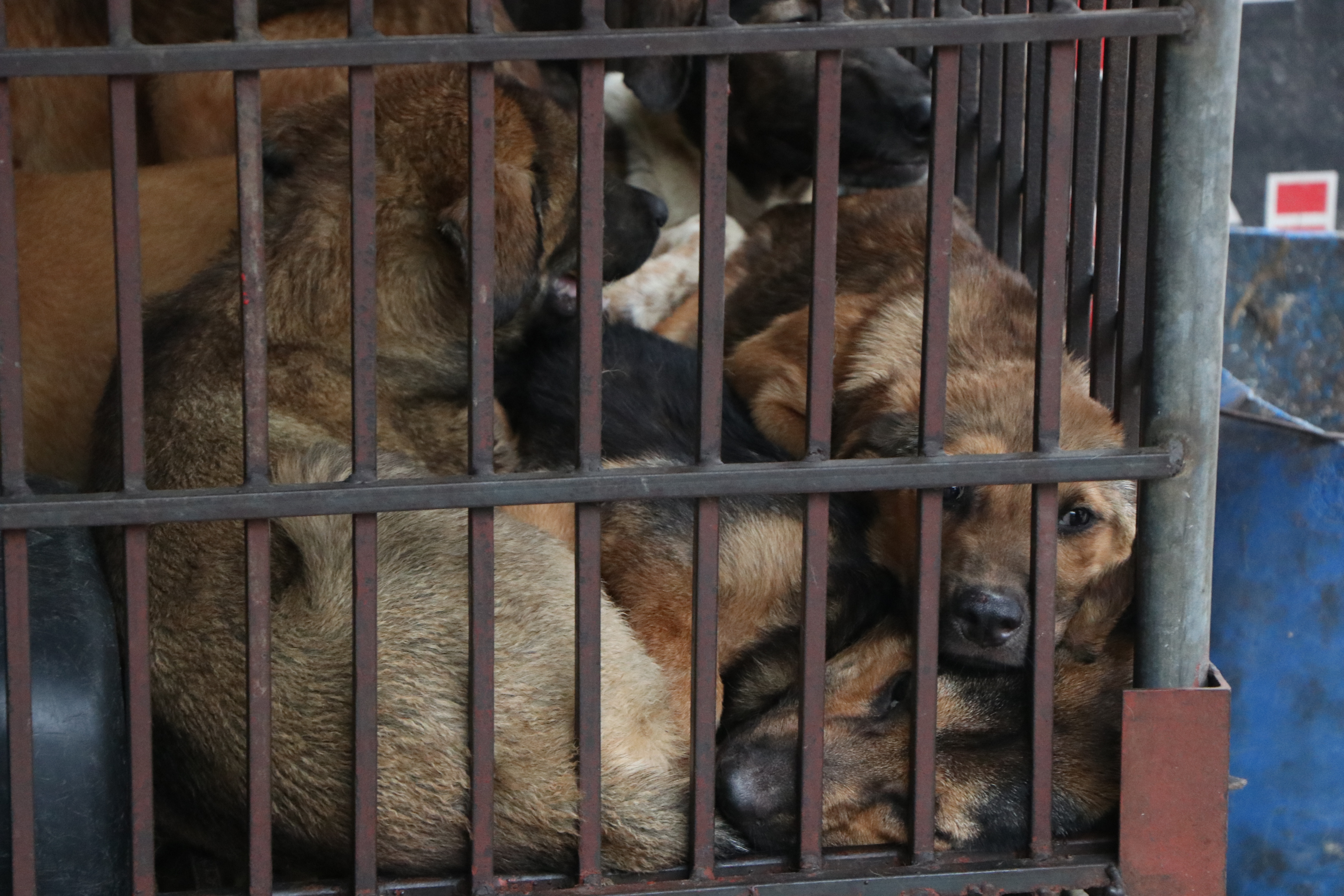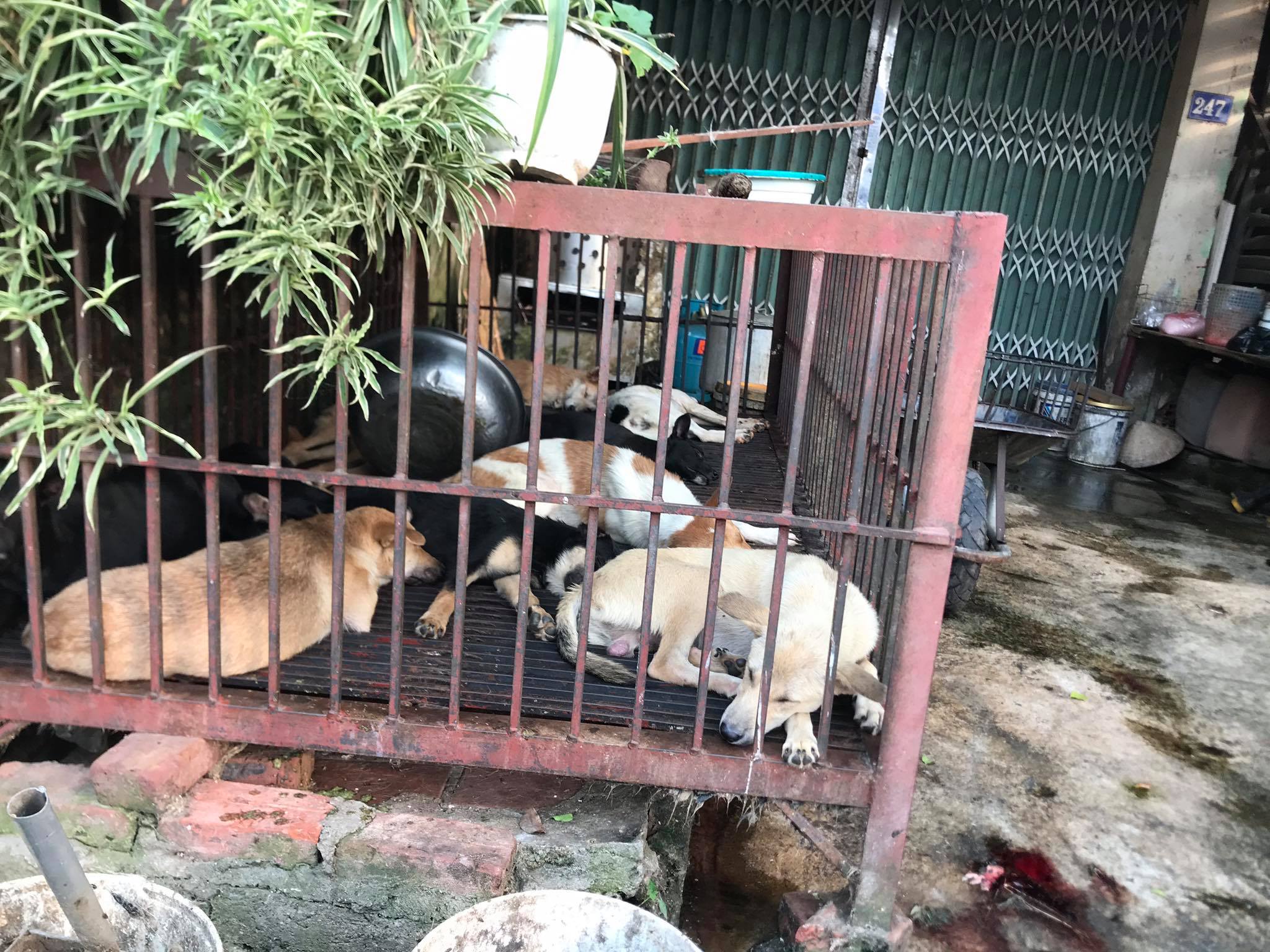Hình ảnh những chú chó bị nhốt chờ đến ngày bị giết thịt.