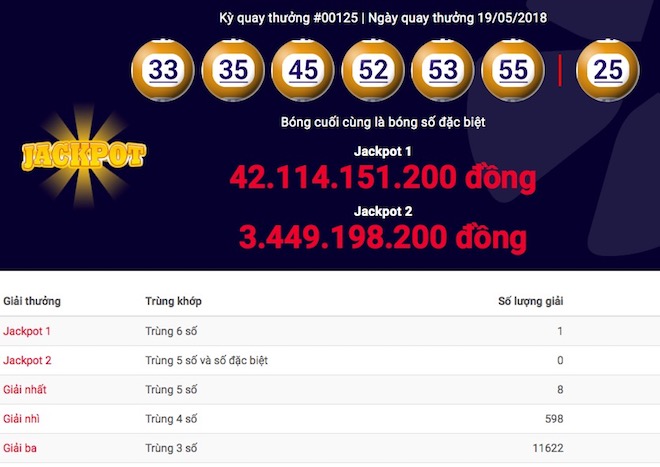 Liên quan vụ có người thứ hai trúng jackpot 1 siêu khó (xác suất trúng 1/29 triệu vé) của sản phẩm Power 6/55, sáng 20/5, Công ty Xổ số điện toán Việt Nam - Vietlott cho biết đã tìm ra nơi phát hành vé. Theo đó, tấm vé được phát hành lúc 07h08′ ngày 19/5 với 5 bộ số, trong đó bộ số 33 - 35 - 45 - 52 - 53 - 55 trùng với kết quả trúng thưởng jackpot 1 trị giá hơn 42 tỉ đồng.