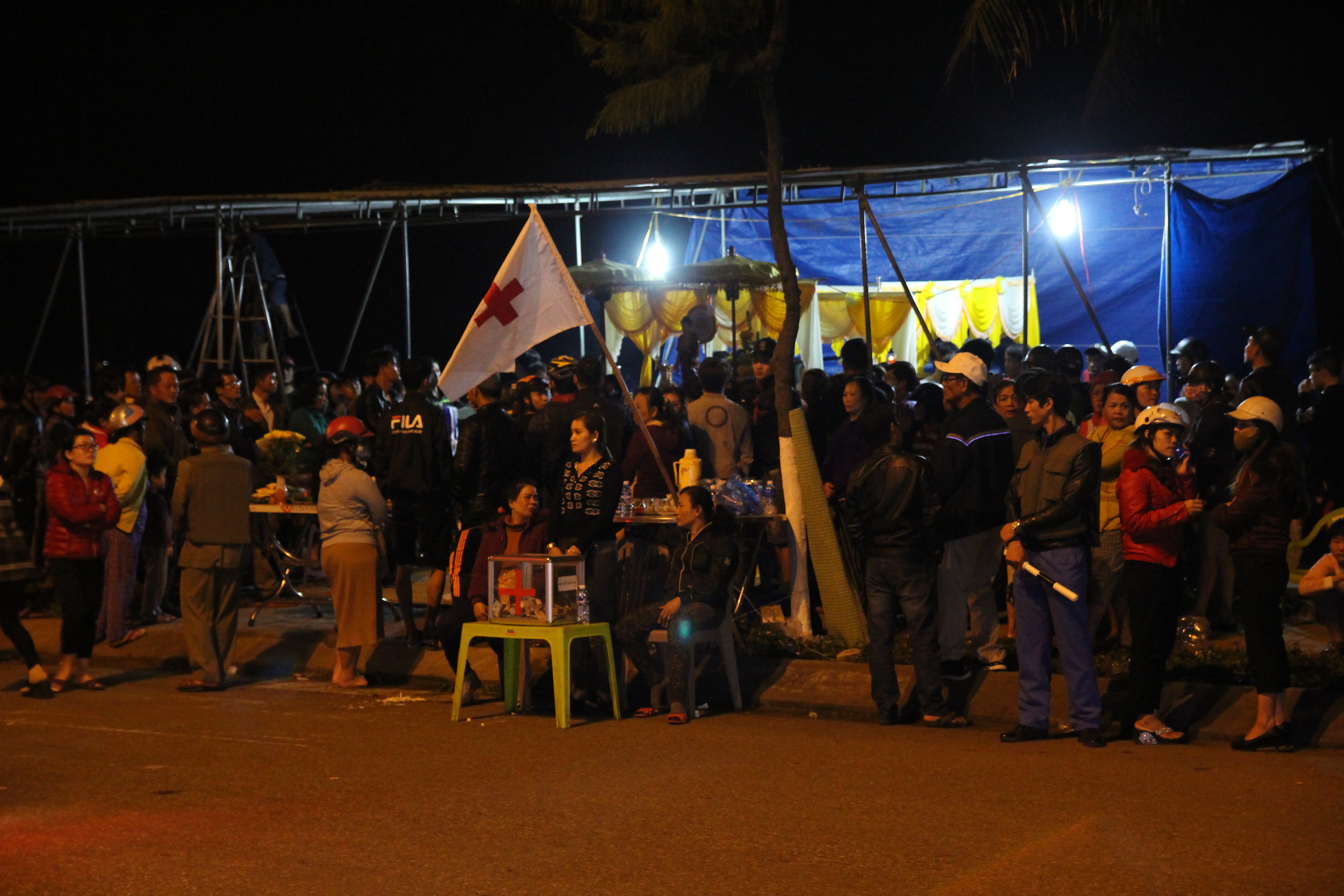 Khuya 24/01, hàng trăm người tập trung tại bờ biển trên đường Nguyễn Tất Thành (quận Thanh Khê, TP. Đà Nẵng) chờ tiếp nhận thi thể anh Nguyễn Đình Hoành (25 tuổi, trú quận Thanh Khê, TP Đà Nẵng) để tổ chức mai táng.