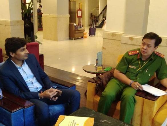 Công an phường Bến Nghé gặp khách Ấn Độ để tìm hiểu vụ việc bị tài xế taxi “chặt chém”. (Ảnh: VNN).