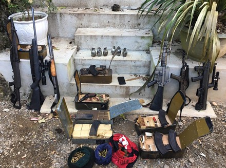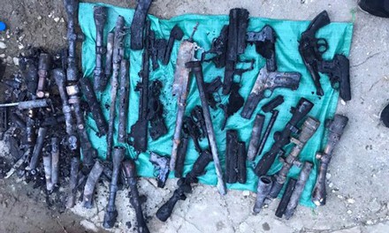 Hàng loạt vũ khí quân dụng đã được tìm thấy sau cuộc đấu súng tiêu diệt 2 trùm ma túy. Ảnh: Dân trí.