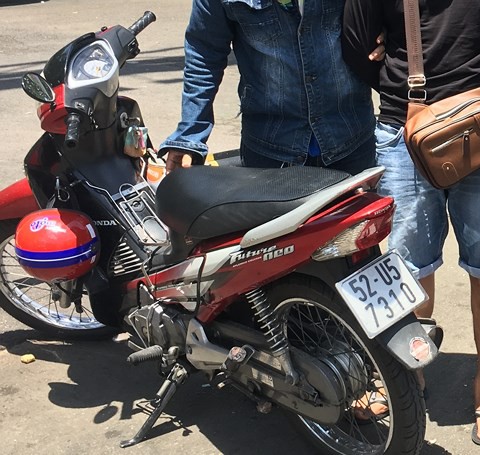 Chiếc xe máy mà đối tượng đang sử dụng là chiếc xe máy cướp được của 1 cô gái khác. Ảnh: báo Infonet.