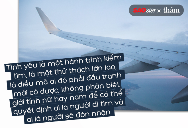 Cô em của tôi đã vướng phải một tình yêu, đủ lớn để từ Sài Gòn, cô gái vốn yêu thương thành phố miền Nam đủ nhiều đến mức tự hứa không bao giờ ra đi đã quyết định bay 1730 cây số ra Hà Nội để tìm một câu trả lời từ chàng trai mà cô có tình cảm. Tôi cảm phục sự mạnh mẽ đó, cảm phục sự kiên cường ẩn trong hình hài bé nhỏ, cảm phục sự cứng đầu bướng bỉnh dù biết bản thân mình có thể bị tổn thương. Tôi yêu mến sự quyết liệt của cô gái này bởi tôi luôn cho rằng, tình yêu là một hành trình kiếm tìm, là một thử thách lớn lao, là điều mà ai đó phải đấu tranh mới có được, là một sự kiện lớn trong đời nơi không phân biệt giới tính nữ hay nam để có thể quyết định ai là người đi tìm và ai là người sẽ đón nhận.