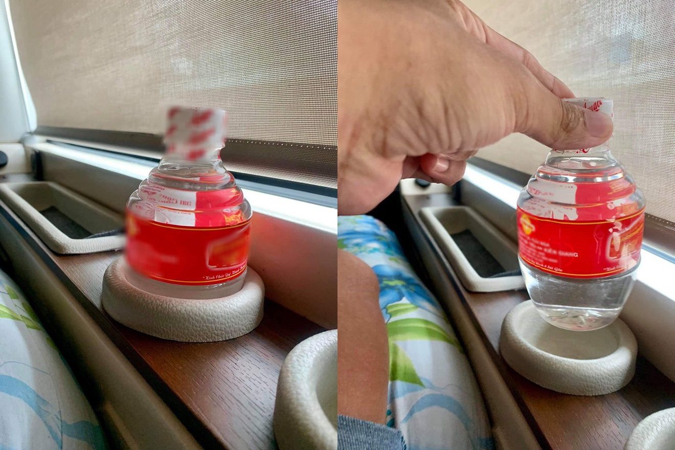 Tuy nhiên, chưa kịp giải quyết cơn khát, cảm giác hụt hẫng và bị lừa dối bủa vây, đến nỗi hành khách không thèm uống chai nước luôn. Chai nước bình thường đâu chẳng thấy, chỉ thấy “giả dối” khi chai nước của nhà xe kia hiện nguyên tí hon khi vừa được nhấc ra khỏi hộc.