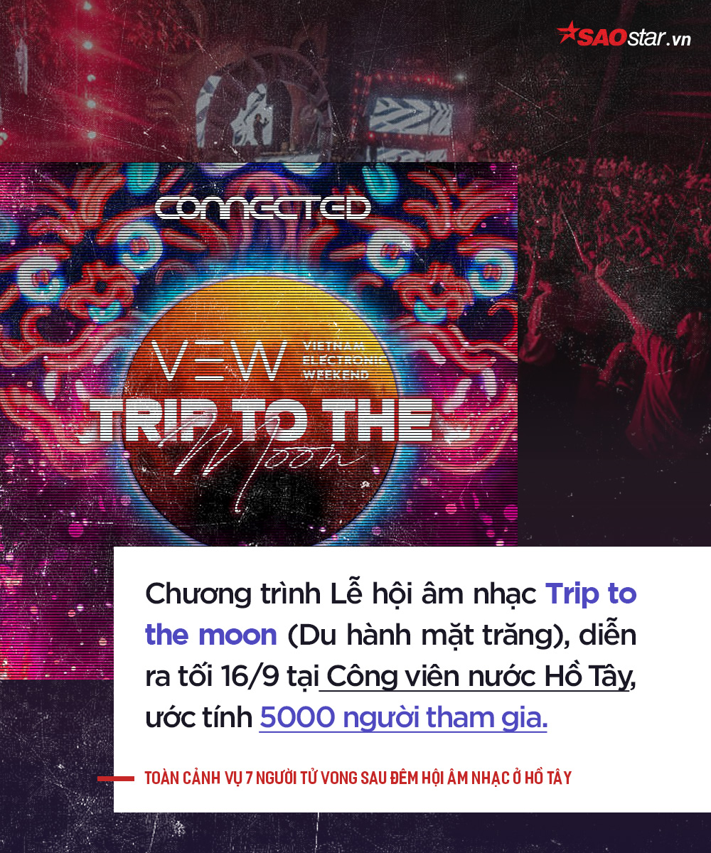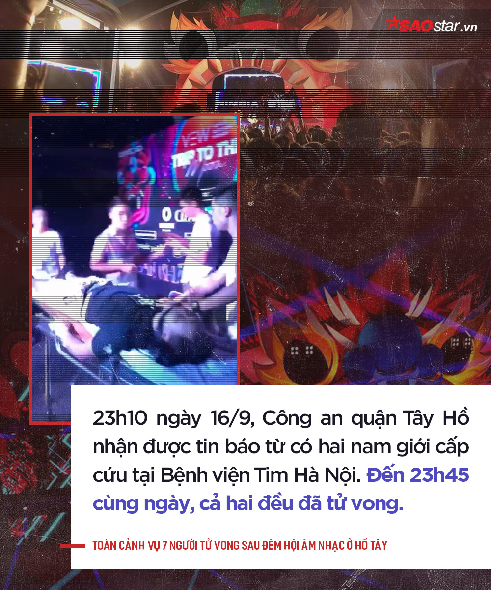 Theo Công an Hà Nội, khoảng 23h10 ngày 16/9, Bệnh viện Tim Hà Nội có hai nam giới đến cấp cứu song 35 phút sau đã tử vong. Qua xác định, hai nạn nhân trên đều tham gia Đêm nhạc hội mùa thu 2018 do Công ty TNHH kết nối Á Châu tổ chức tại công viên nước hồ Tây.