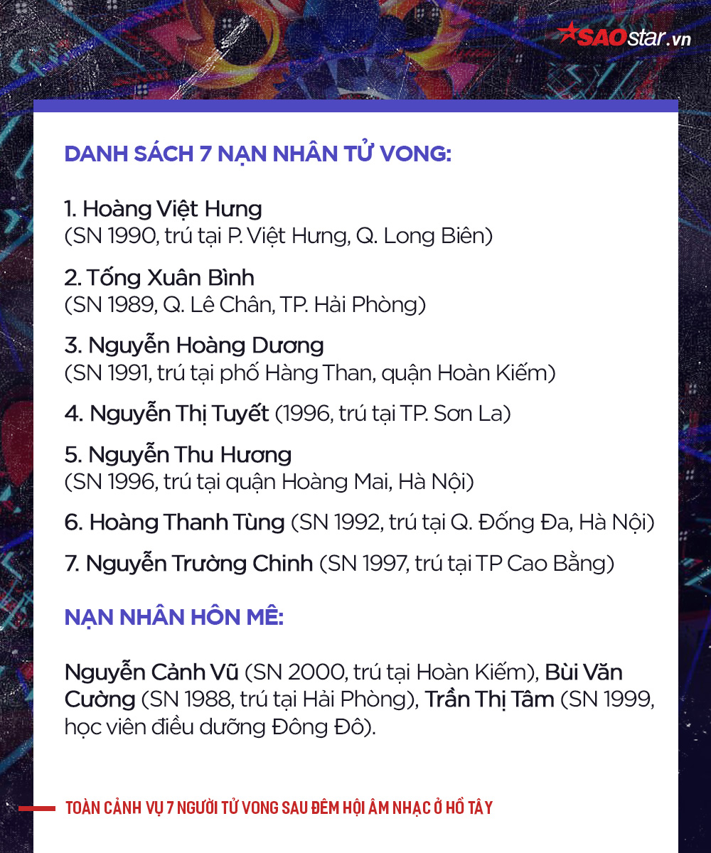 Danh sách nạn nhân tử vong, hôn mê sâu sau lễ hội.