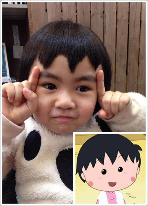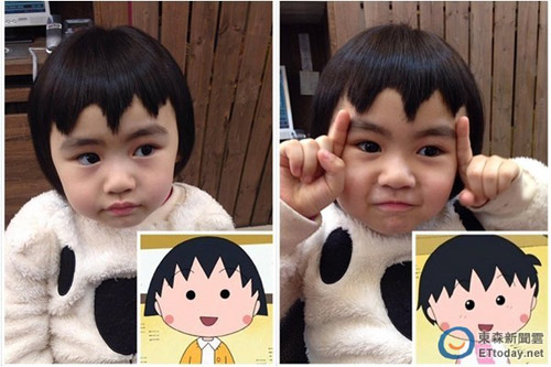 Vì suốt ngày xem hoạt hình Maruko nên cô bé Tiểu Vân Tử, 5 tuổi ở Đài Loan, lúc nào cũng muốn được để kiểu tóc mái răng cưa giống thần tượng của mình.